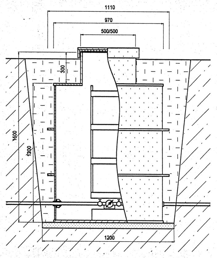 Šachta se usadí do vykopané jámy na pískový podsyp min. 5 cm a obsype se vykopanou zeminou bez větších kamenů. Napojení se provádí do předem navařených vodotěsných průchodek. Vodoměr je v nezámrzné hloubce,takže není nutné žádné další izolování.